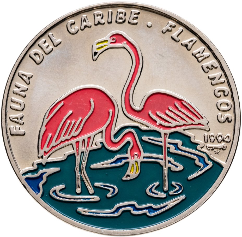 Куба 1 песо (peso) 1994 "Карибская фауна - Красный фламинго"