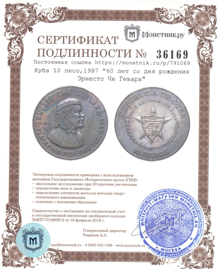- Тираж: Монетный двор: Гавана, Куба; BU=10000 шт.