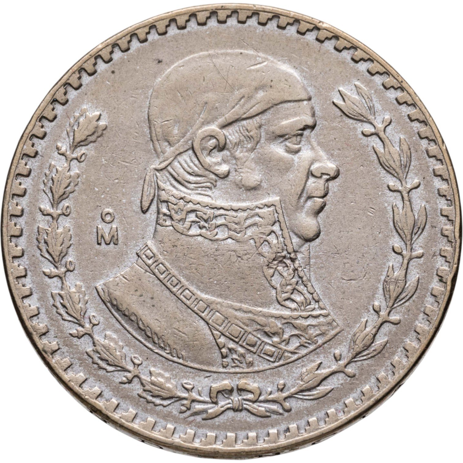 Герб Мексики. Надписи: ESTADOS UNIDOS MEXICANOS / .UN PESO 1958.