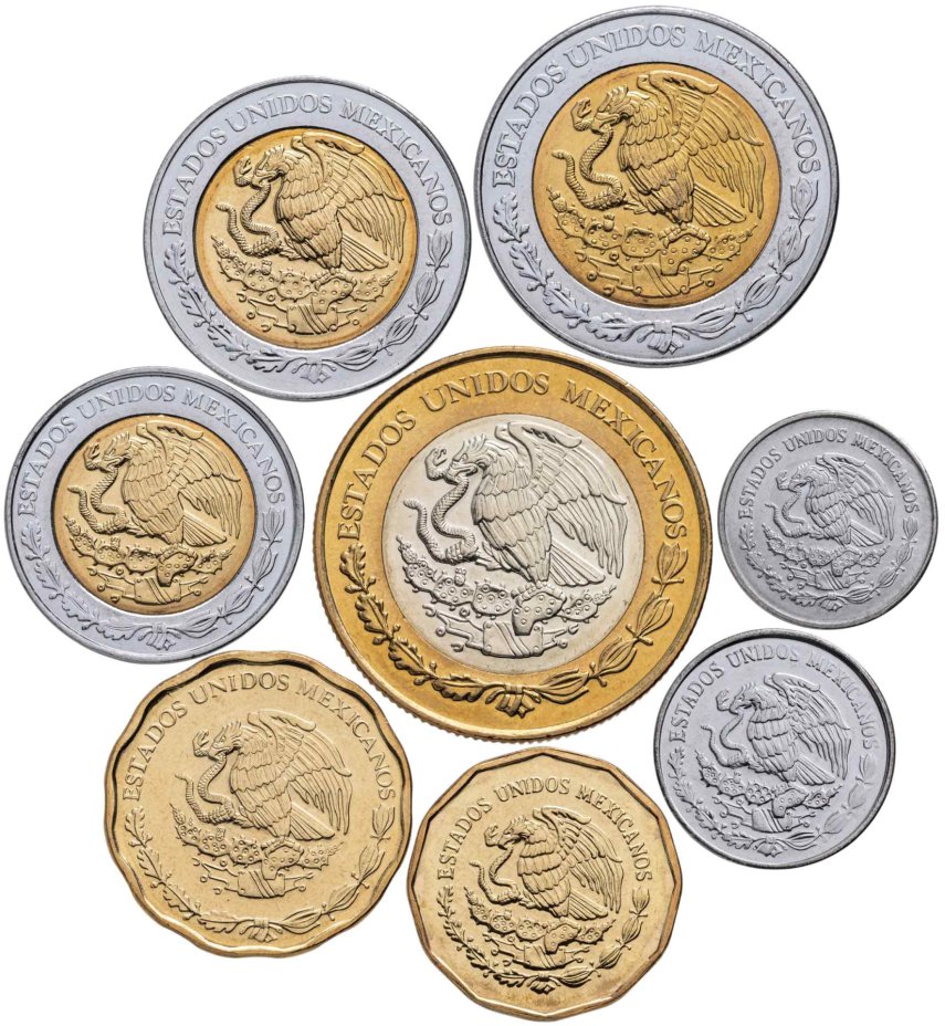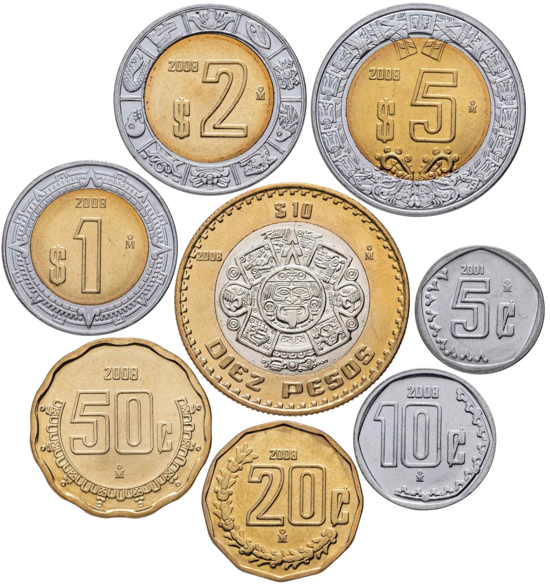 Номиналы 5, 10, 20 и 50 центов; 1, 2, 5 и 10 песо