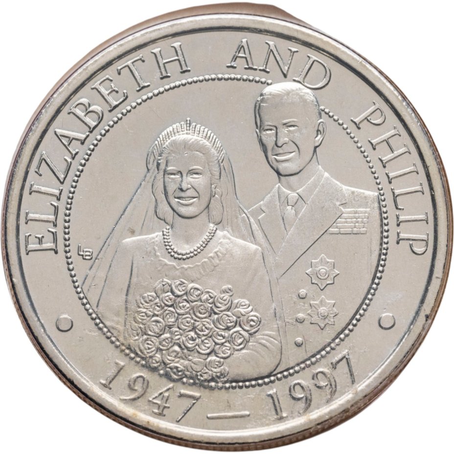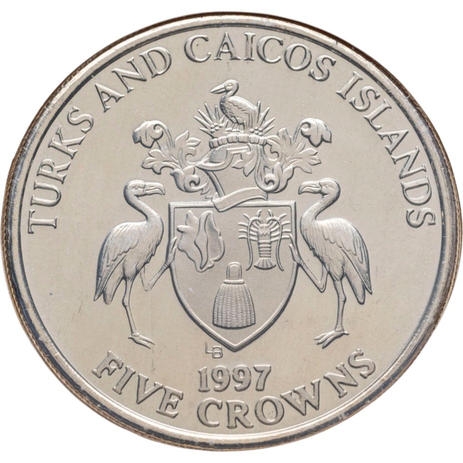 Тёркс и Кайкос 5 крон (crowns) 1997 50 лет свадьбе Королевы Елизаветы II и Принца Филиппа, в конверте с маркой