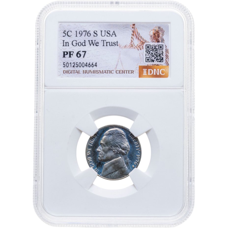 США 5 центов (cents) 1976 S Proof "Jefferson Nickel (Джефферсон)" в слабе DNC PF67