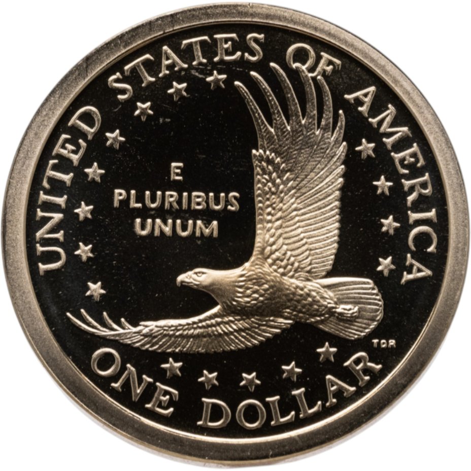 США 1 dollar (доллар) 2002 S Proof "Sacagawea dollar (Сакагавея доллар) парящий орёл", знак монетного двора "S" - Сан-Франциско США