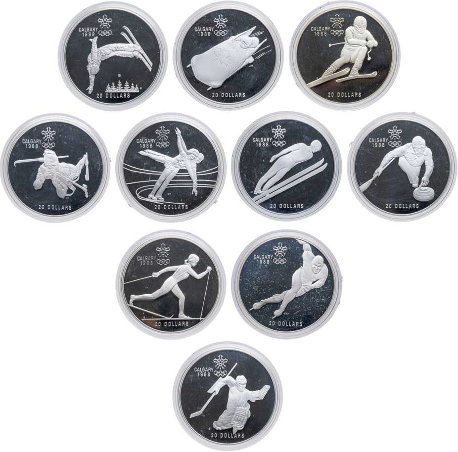 Канада 20 долларов 1985-1987 набор монет "Олимпийские игры Калгари-1988" в фуляре