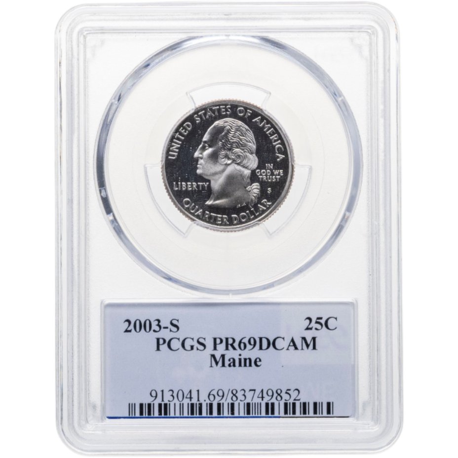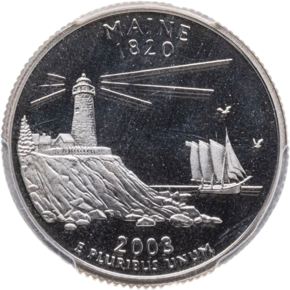 США 25 центов (квотер, 1/4 доллара, quarter dollar) 2003 "Штат Мэн" в слабе PCGS PR69DCAM
