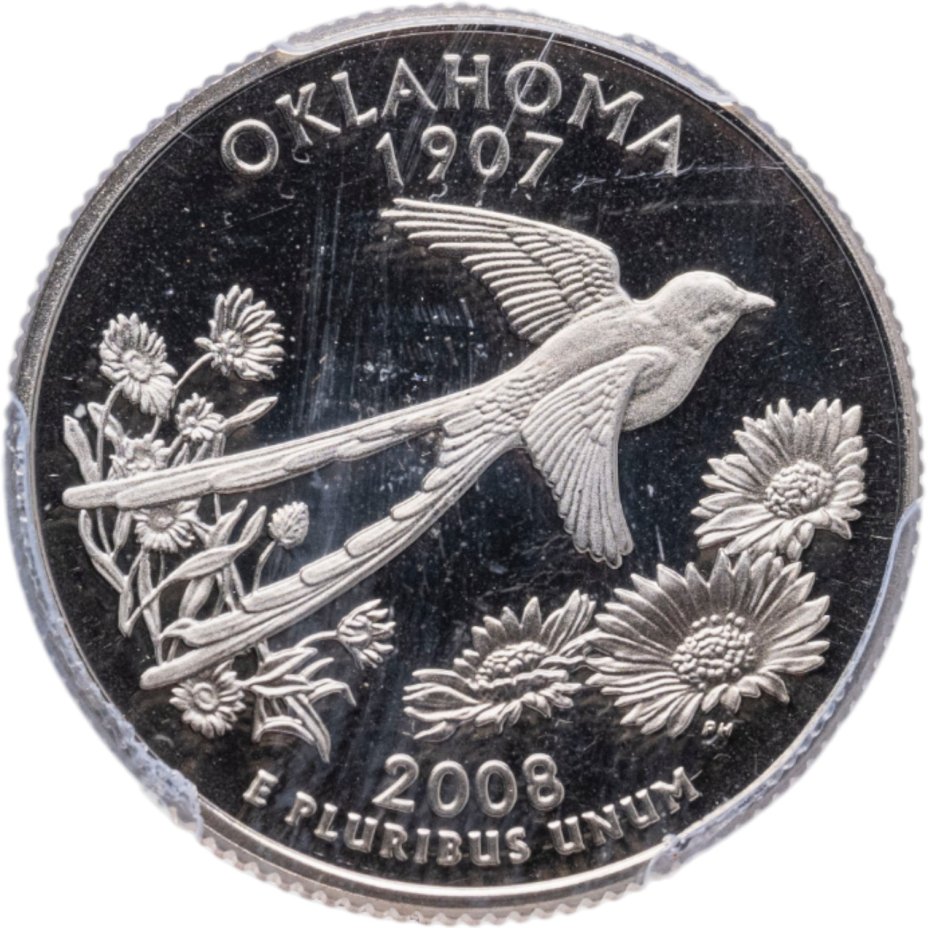 США 1/4 доллара (квотер, 25 центов) 2008 "Штат Оклахома" в слабе PCGS PR69DCAM