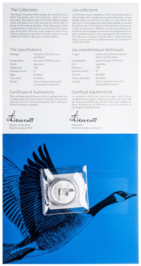 Канада 20 долларов 2014 UNC "Канадская казарка" в блистере