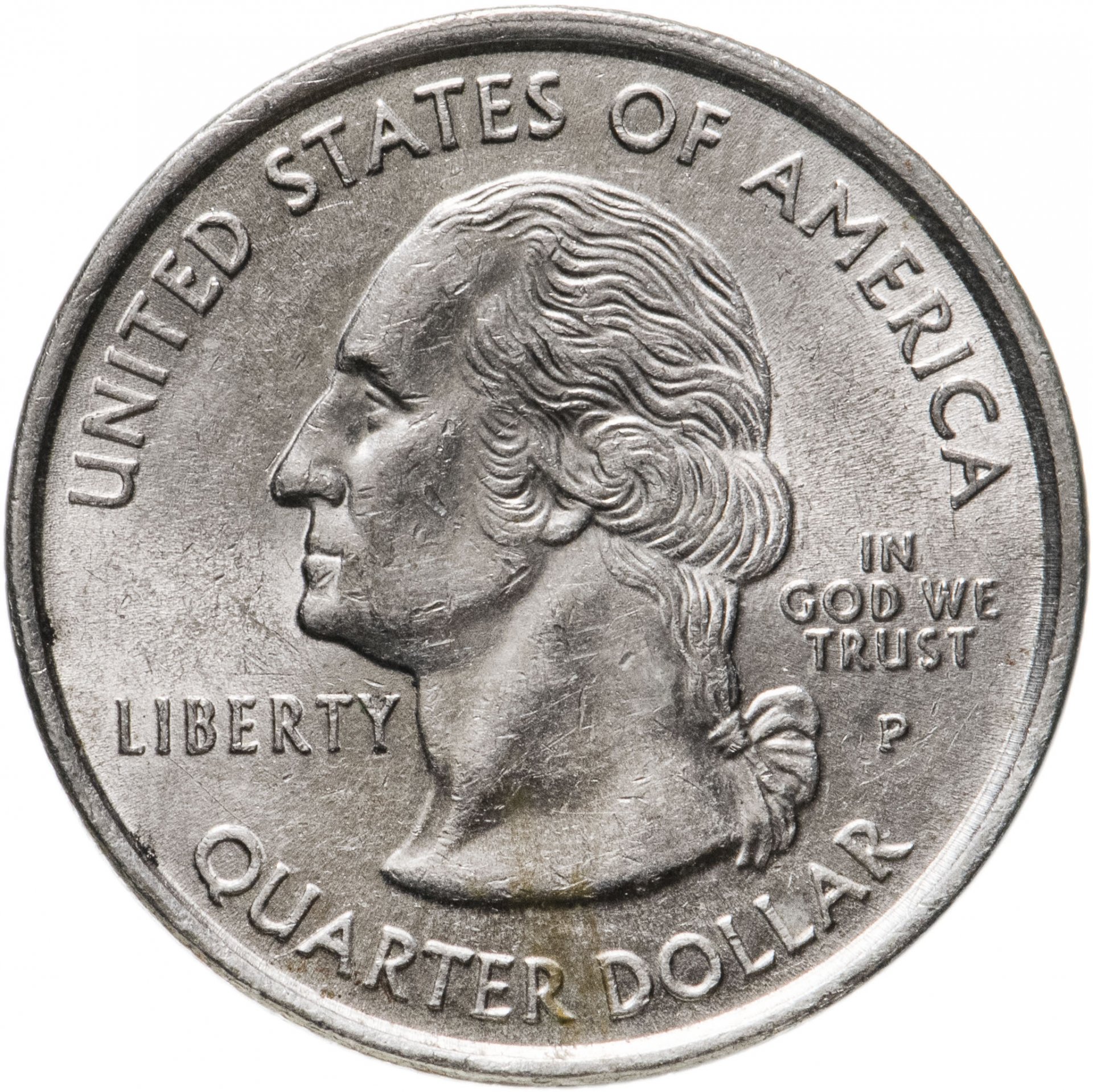 Аверс: в центре изображение Джорджа Вашингтона в профиль, повернутый влево. Сверху по кругу слова «UNITED STATES OF AMERICA». По левой стороне от профиля надпись «LIBERTY» («СВОБОДА»). С правой стороны «IN GOD WE TRUST» («МЫ ВЕРИМ В БОГА»). Внизу по канту «QUARTER DOLLAR». Справа монограмма монетного двора – «Р» (Philadelphia).