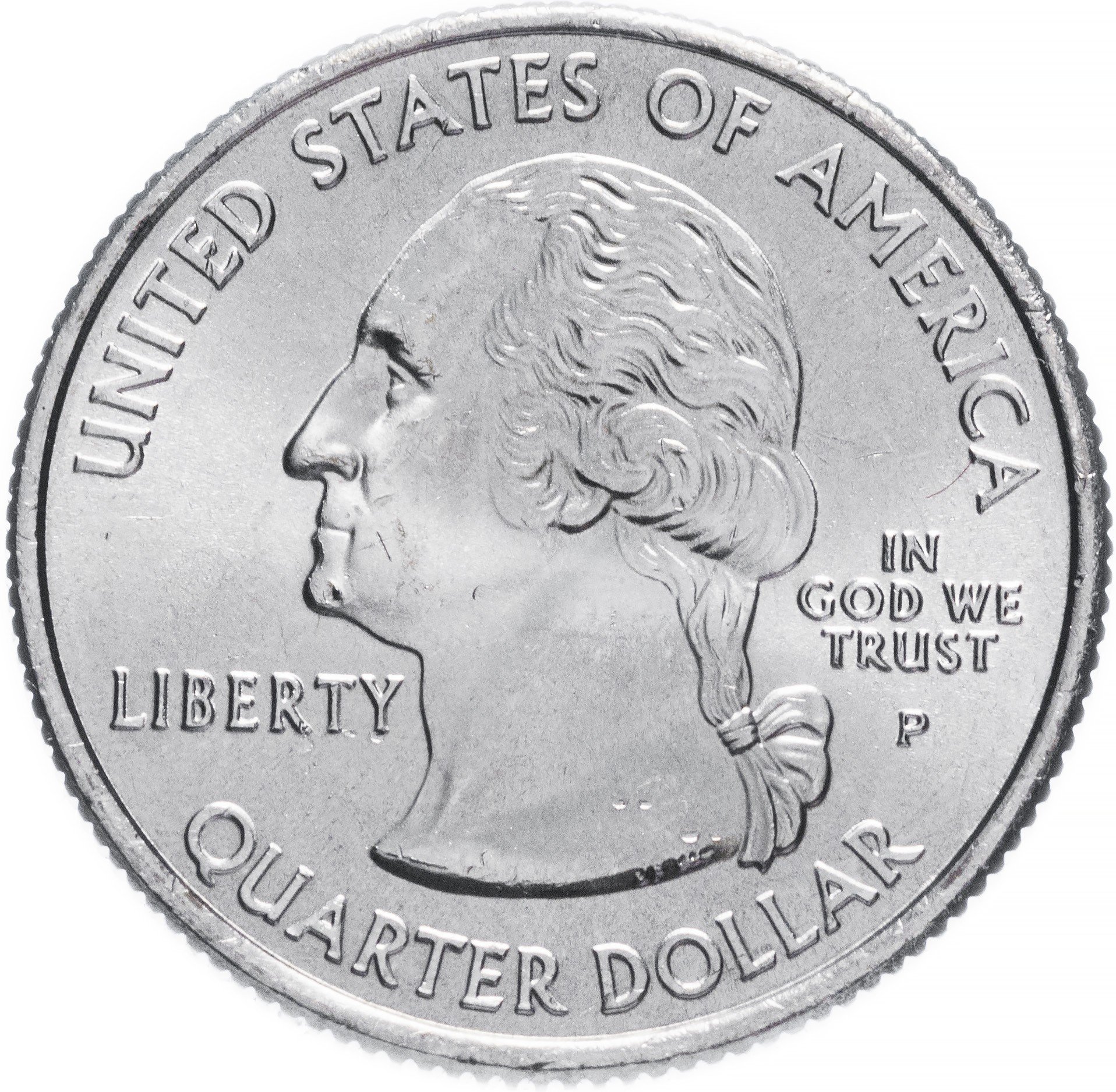 Аверс: в центре изображение Джорджа Вашингтона в профиль. По кругу в верхней части монеты слова «UNITED STATES OF AMERICA». По левой стороне от профиля надпись «LIBERTY» («СВОБОДА»). Справа девиз «IN GOD WE TRUST» («МЫ ВЕРИМ В БОГА»). Под надписью монограмма монетного двора «P». Внизу полукругом номинал «QUARTER DOLLAR».
