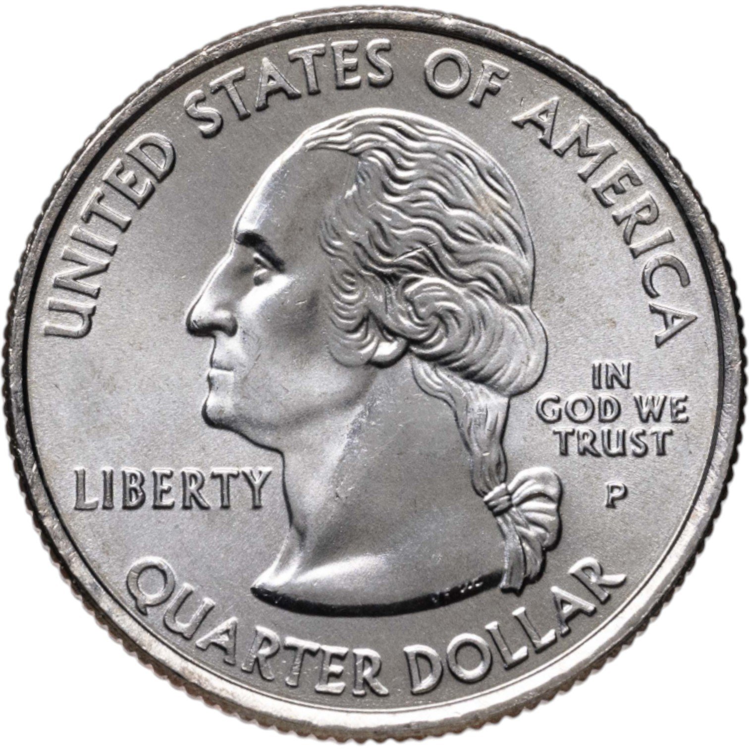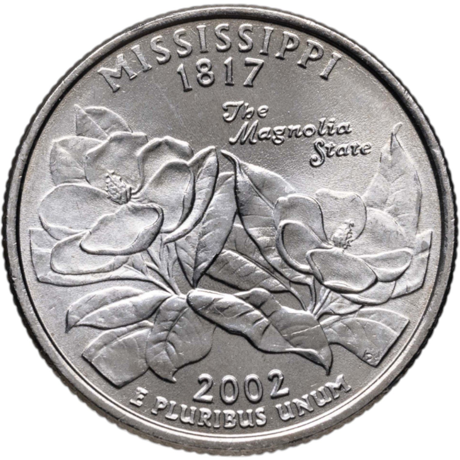 США 25 центов (квотер, 1/4 доллара, quarter dollar) 2002 P Квотер штата Миссисипи знак монетного двора: "P" - Филадельфия