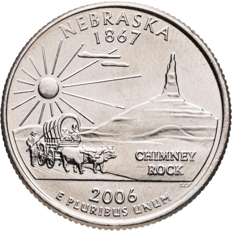 США 25 центов (квотер, 1/4 доллара, quarter dollar) 2006 "Небраска", знак монетного двора "D" - Денвер