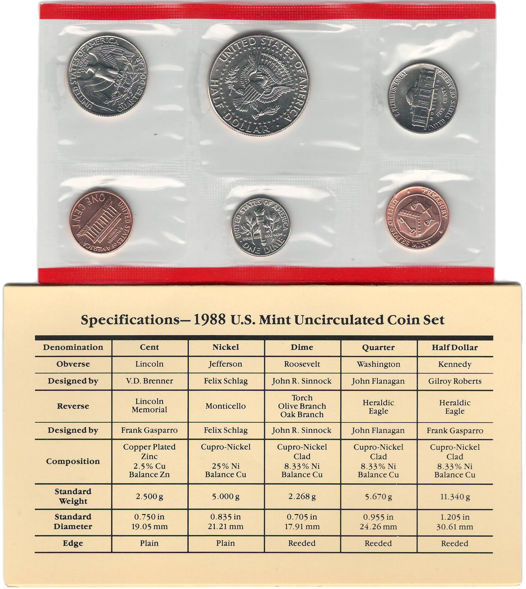 США набор монет 1988 P+D (12 монет)