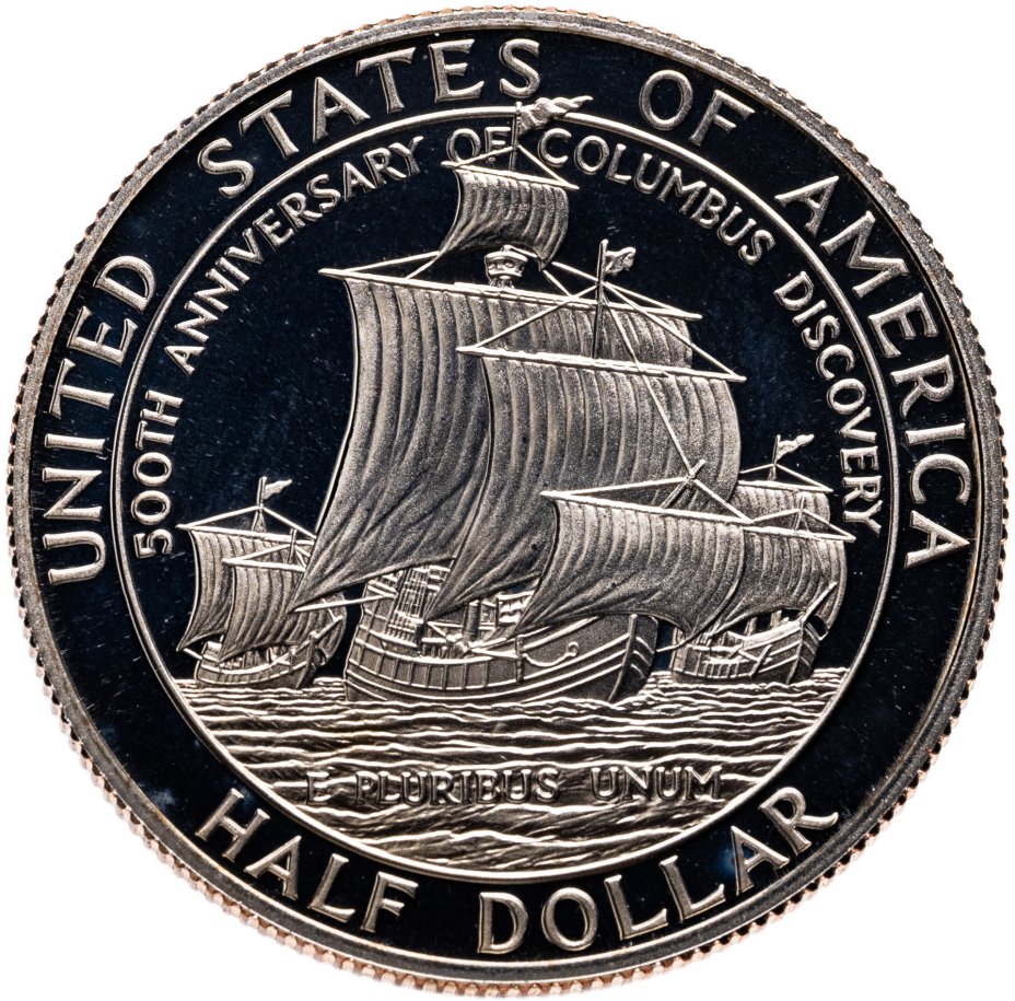 США 50 центов (1/2 доллара, half dollar) 1992 Proof Columbus Quincentenary (500 лет открытия Америки Христофором Колумбом)