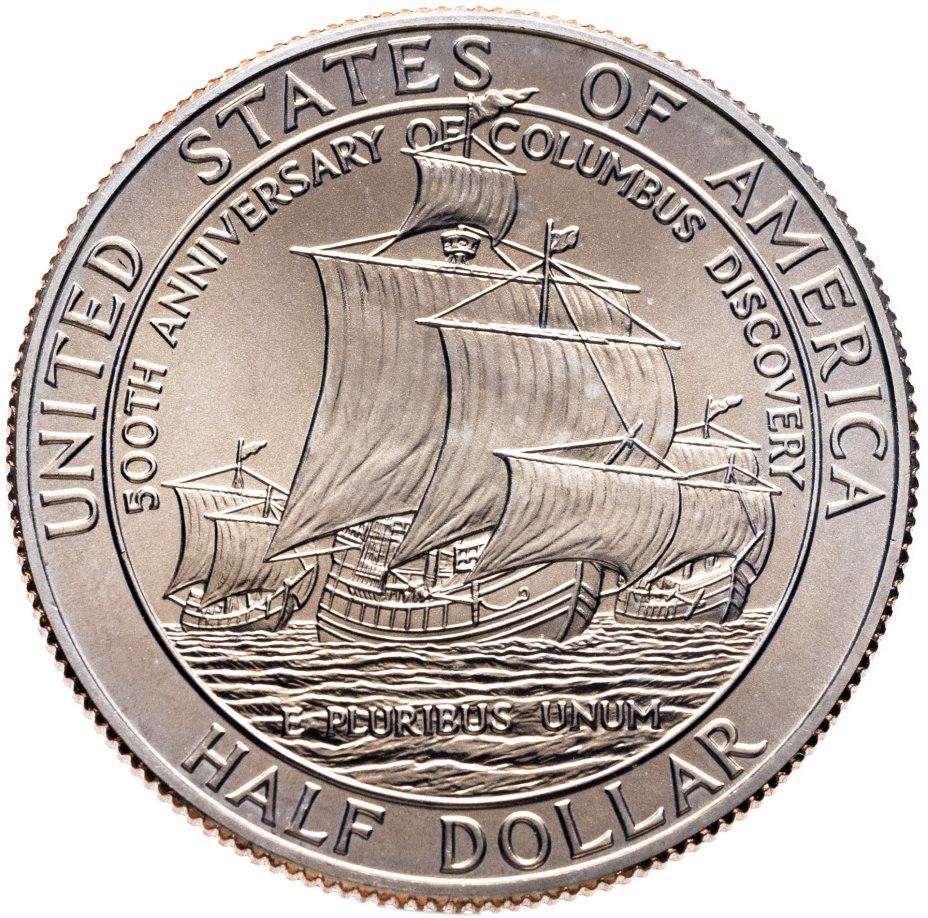 США 50 центов (1/2 доллара, half dollar) 1992 Columbus Quincentenary (500 лет открытия Америки Христофором Колумбом)
