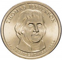 Томас Джефферсон является 3-м Президентом США, считается одним из «отцов-основателей» этого государства; за заслуги перед ним и был увековечен на одной из первых однодолларовых монет вышеназванной серии.