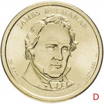 США 1 доллар 2010 D "15-ый Президент США - Джеймс Бьюкенен"