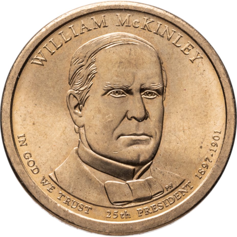 Монета с 25-м президентом США Уильямом Мак-Кинли младшим была выпущена 25-й в очереди, в феврале 2013 года. Он правил соединёнными Штатами в 1897-1901 годах. Первый раз был избран в конце 1896, и в 1900-м переизбран ещё на один срок, но не успел его отбыть.