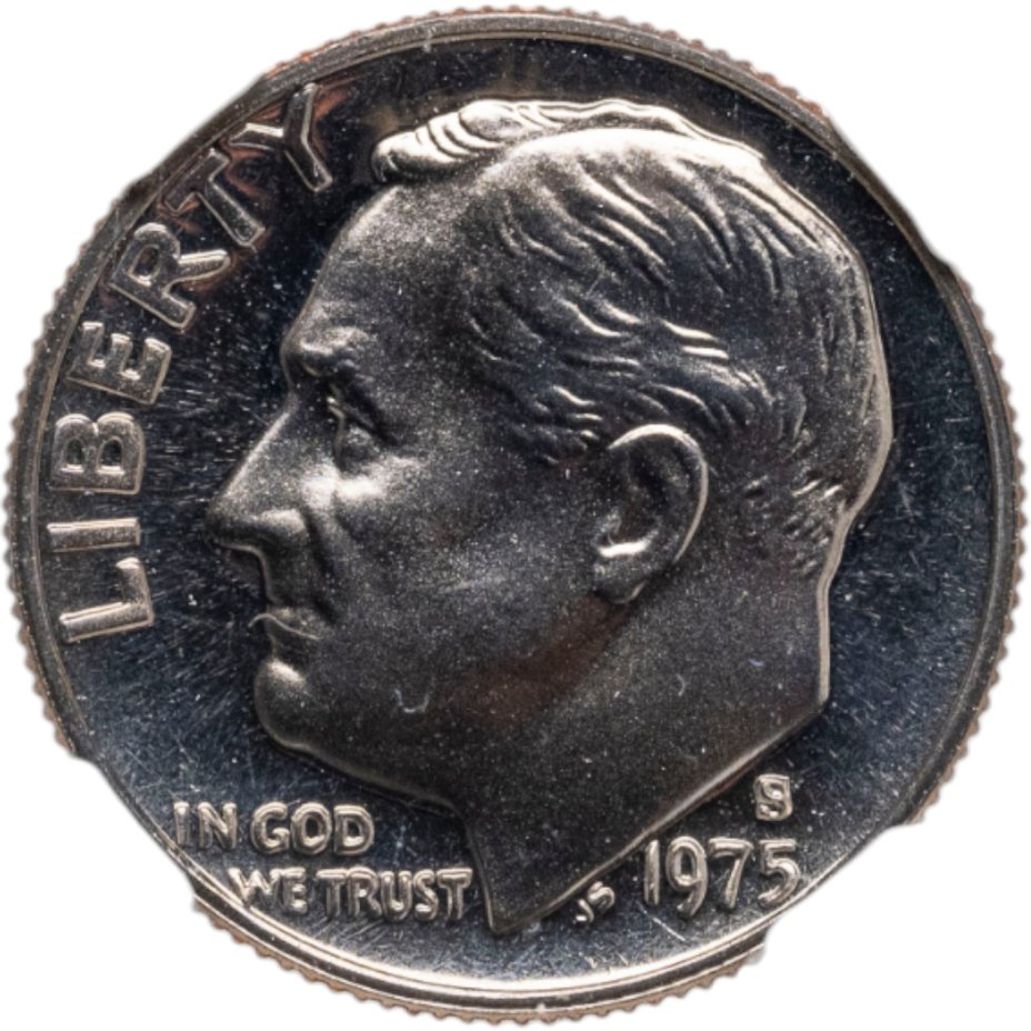 Купить США 1 дайм (10 центов, one dime) 1975 S "Roosevelt Dime" в слабе DNC PF69