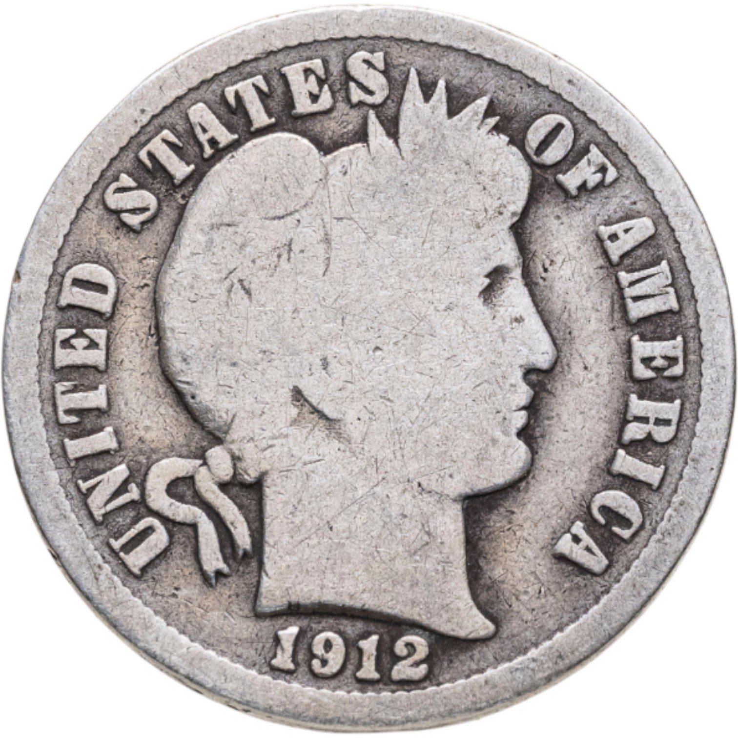 Купить США 10 центов (дайм, one dime) 1912 Barber Dime Без отметки монетного двора