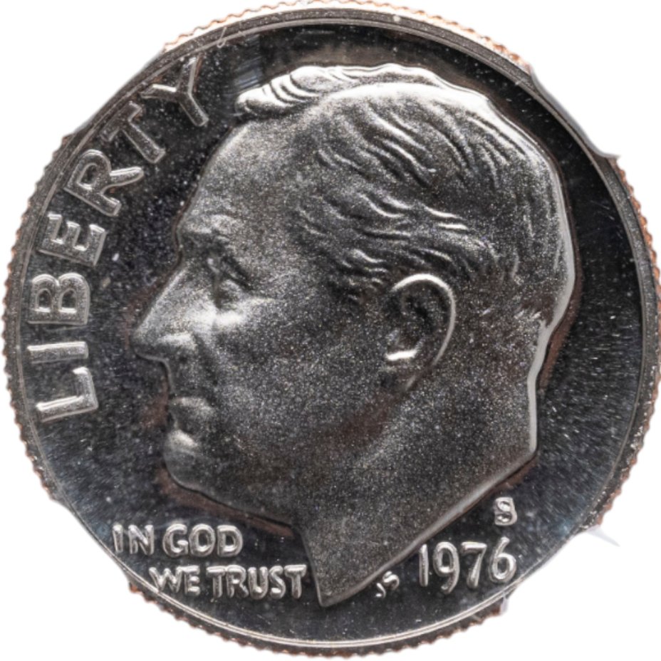 США 10 центов (one dime) 1976 "Roosevelt Dime" в слабе DNC PF69