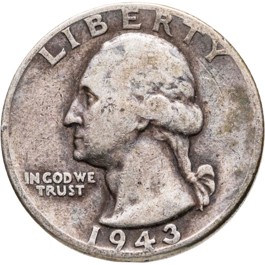 США 25 центов (квотер, 1/4 доллара, quarter dollar) 1943 Washington Quarter Без отметки монетного двора