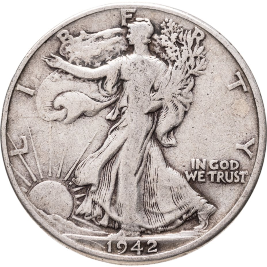 купить США 50 центов (1/2 доллара, half dollar) 1942 Walking Liberty Half Dollar Без отметки монетного двора