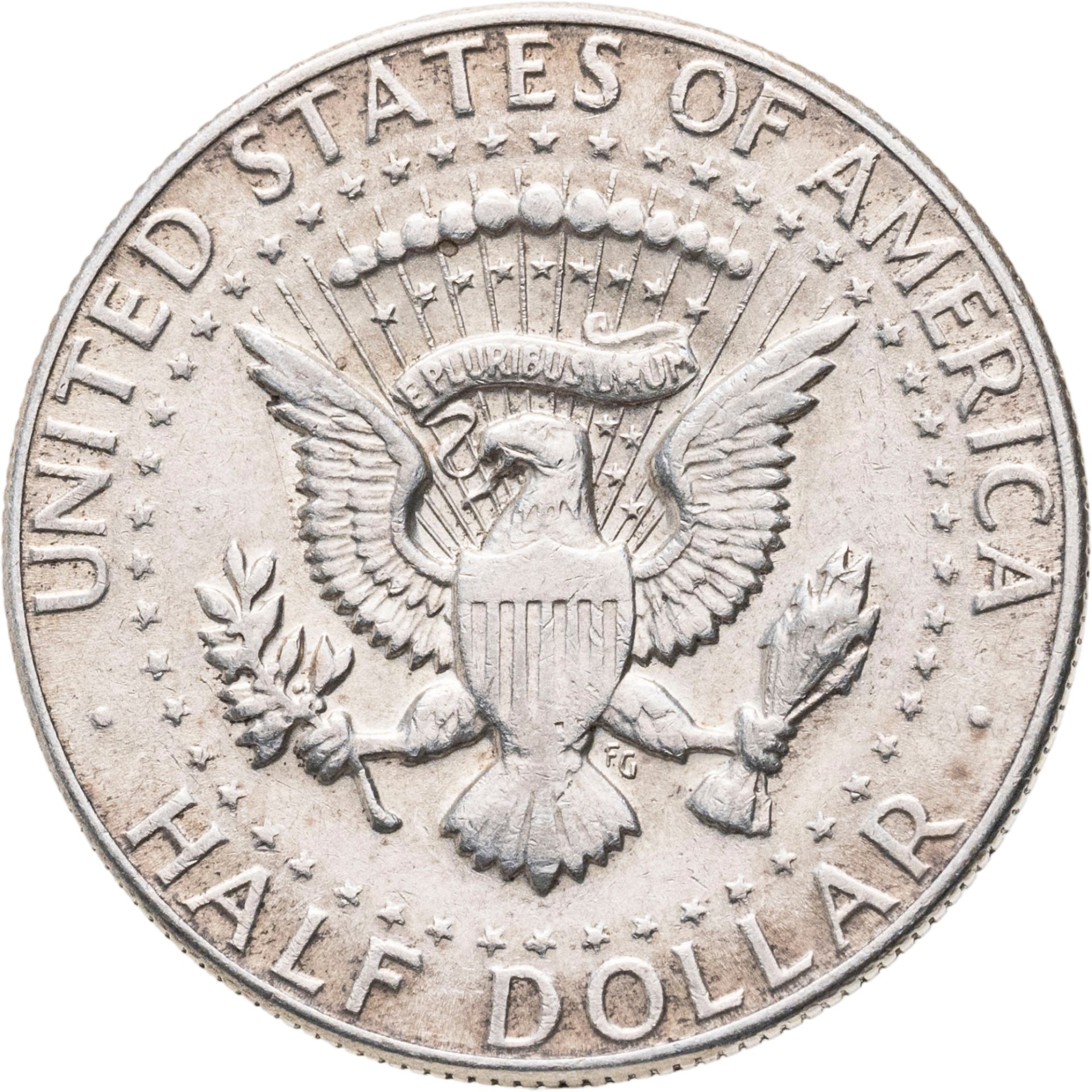 Изображён Государственный герб США (белоголовый орёл со щитом) в кольце из звезд. Надписи: UNITED STATES OF AMERICA / E PLURIBUS UNUM / HALF DOLLAR.