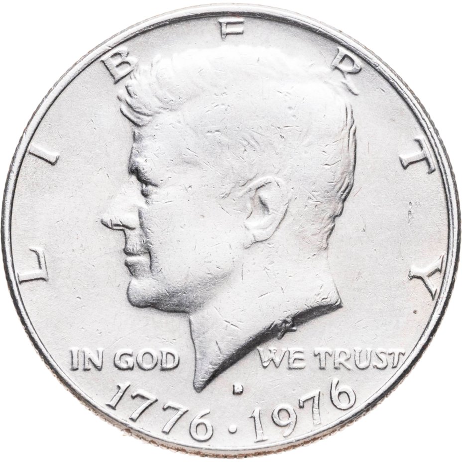 США 50 центов (1/2 доллара, half dollar) 1976 D 200 лет независимости США знак монетного двора "D" - Денвер