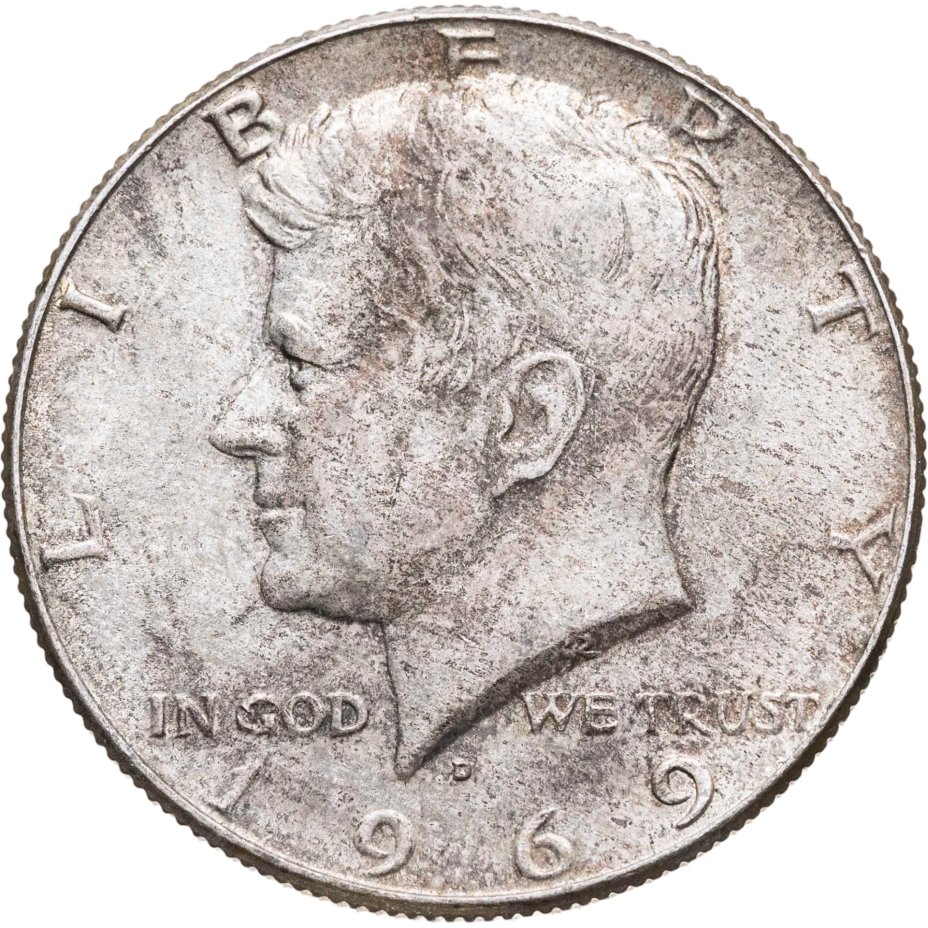 США 50 центов (1/2 доллара, half dollar) 1969 Kennedy Half Dollar (Кеннеди), знак монетного двора "D" - Денвер