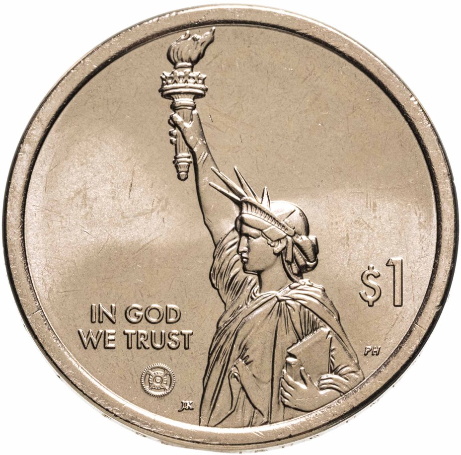 - 1 доллар с портретами президентов США (серия «Президенты США») и с изображением индианки (серия «Сакагавея»).