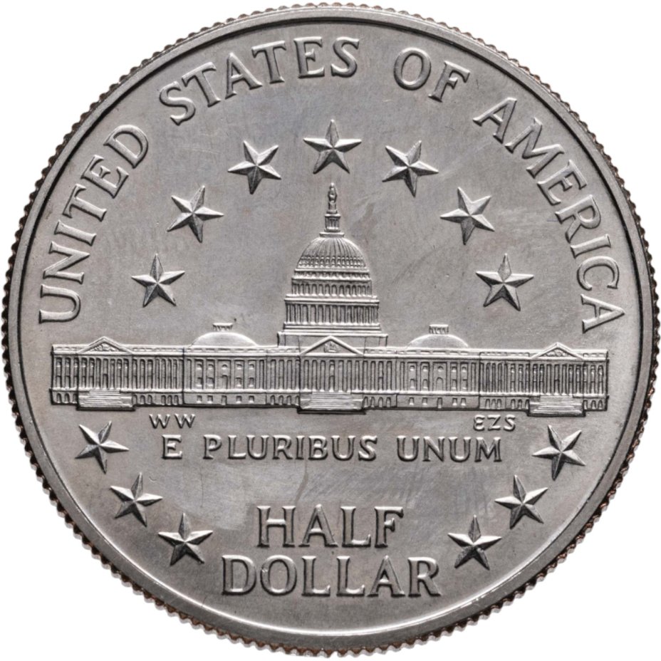 - 50 центов (полдоллара) с портретом Кеннеди.