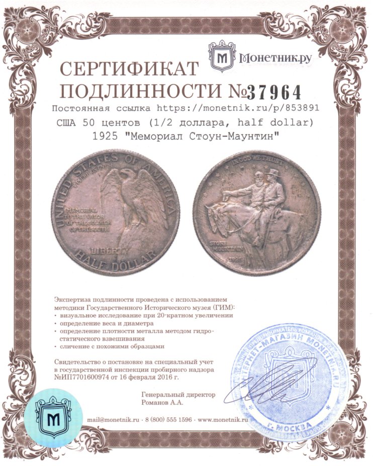 - Тираж: Монетный двор: Филадельфия, США; UNC=26928 шт.
