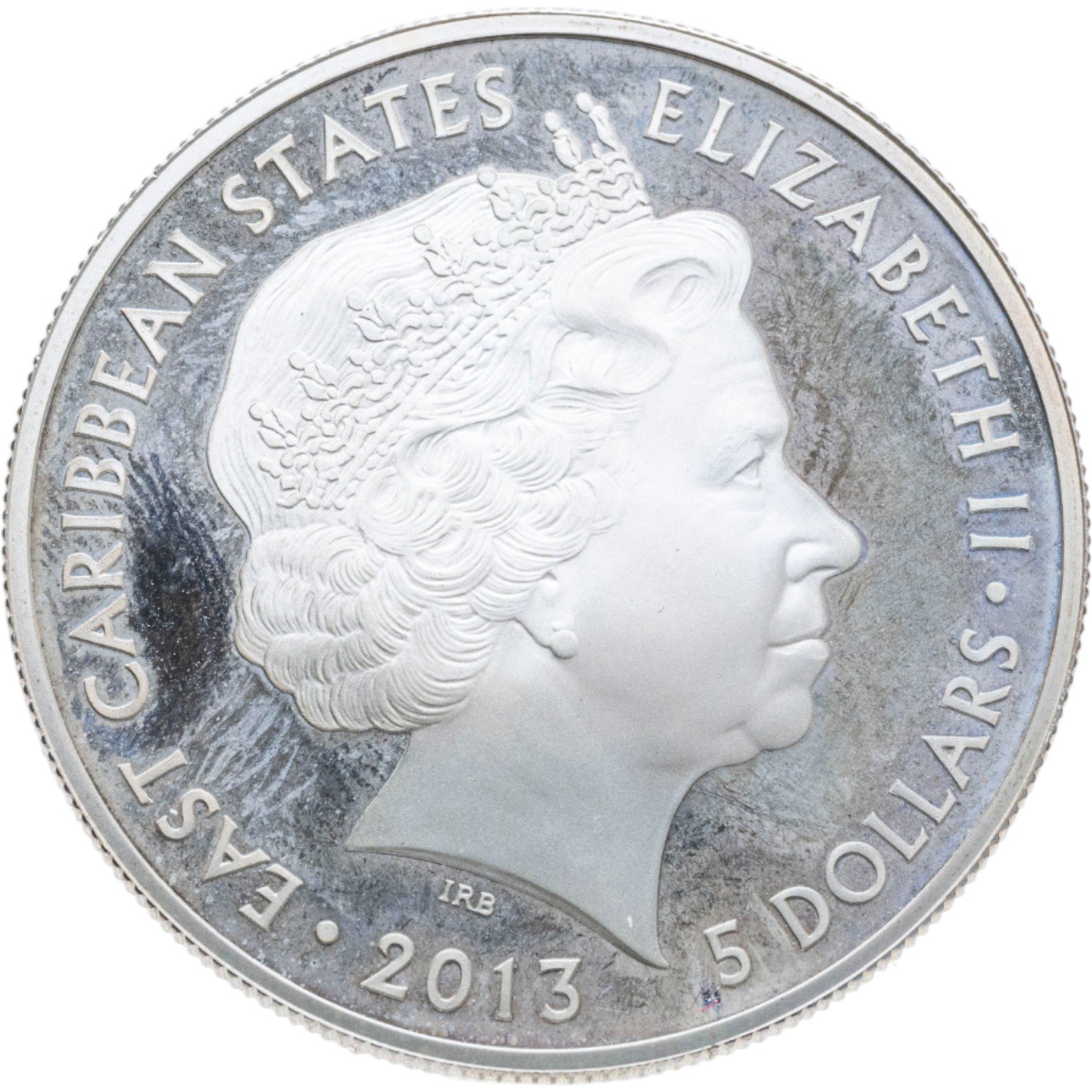 Купить Восточные Карибы 5 долларов 2013 Годовщина вступления на престол