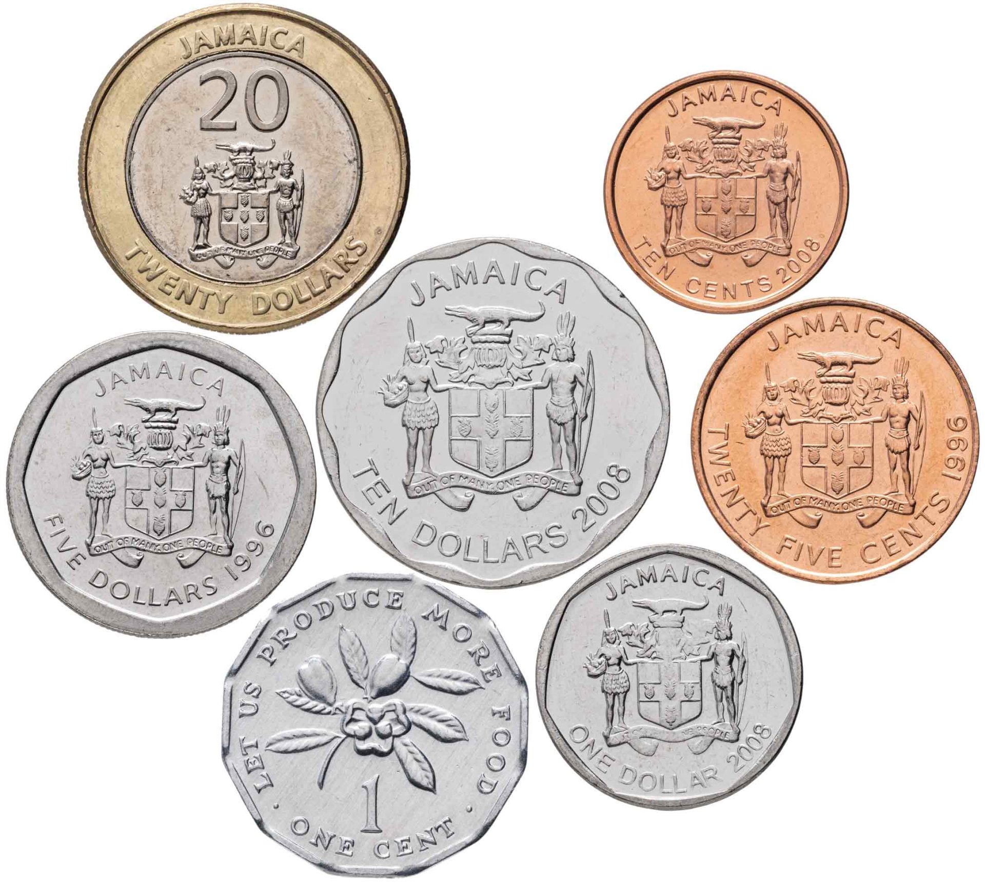 Номиналы 1, 10 и 25 центов; 1, 5, 10 и 20 долларов
