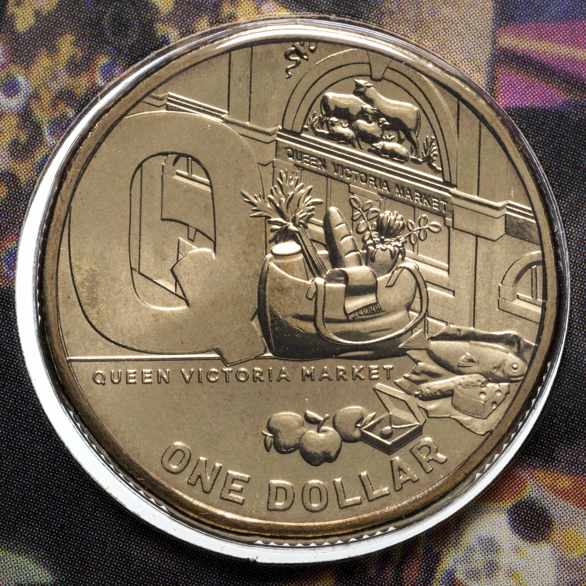 Купить Австралия 1 доллар 2021 "Рынок королевы Виктории", в буклете с маркой