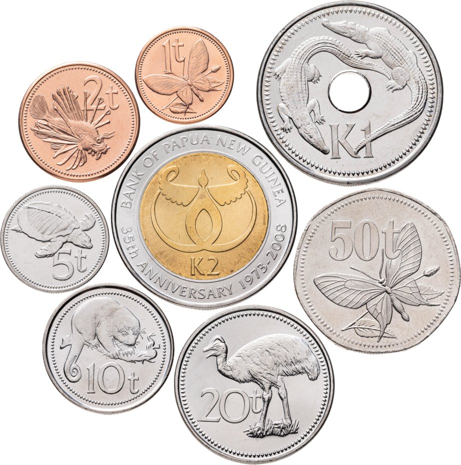 Папуа - Новая Гвинея набор из 8 монет 1995-2014, случайный год