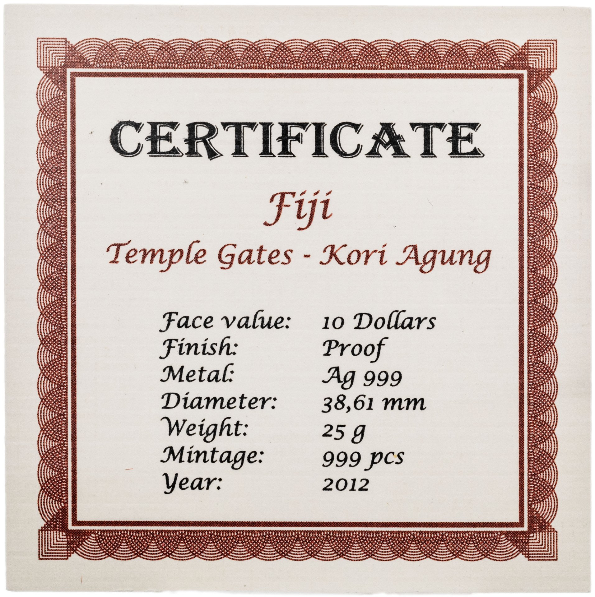Фиджи 10 долларов 2012 "Дворцовые врата: Кори агунг" с сертификатом