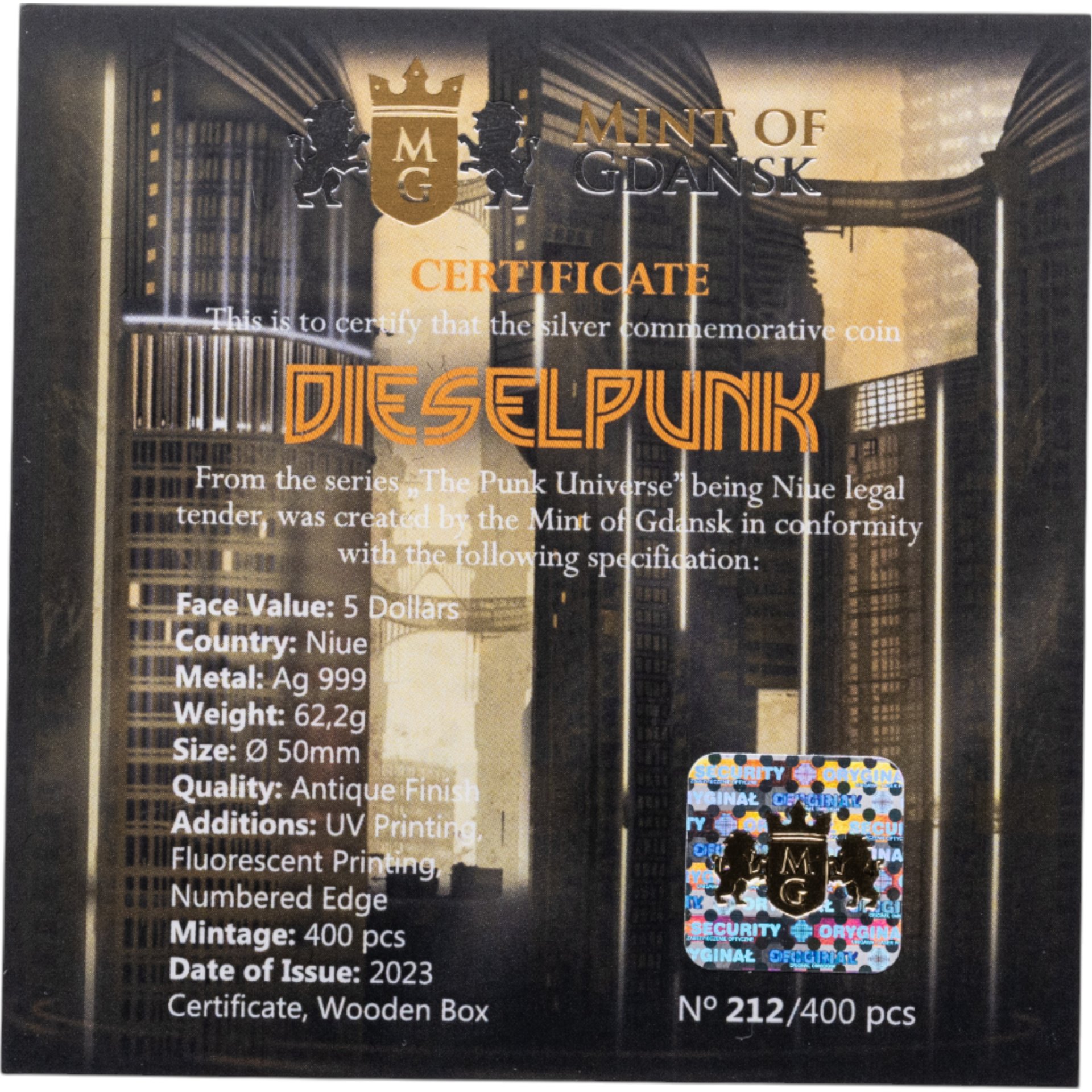 Остров Ниуэ 5 долларов 2023 "Дизельпанк", в футляре с сертификатом