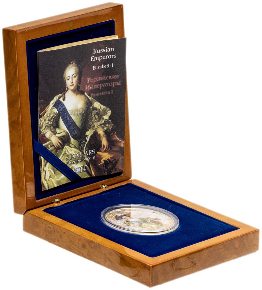 Купить Остров Ниуэ 5 долларов 2014 "Российские Императоры - Елизавета I" в футляре с сертификатом