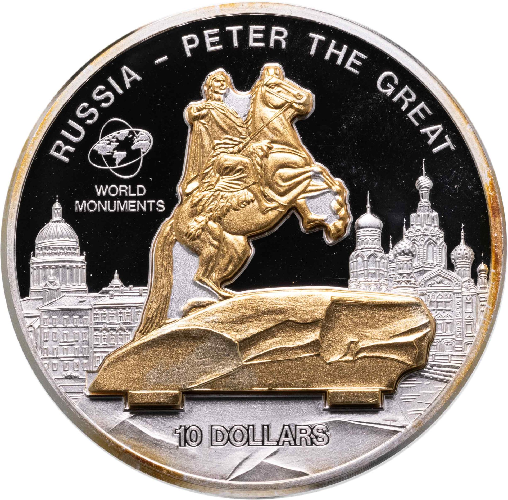 Острова Кука 10 долларов 2009 монета-трансформер "Памятник Петру I Медный всадник"