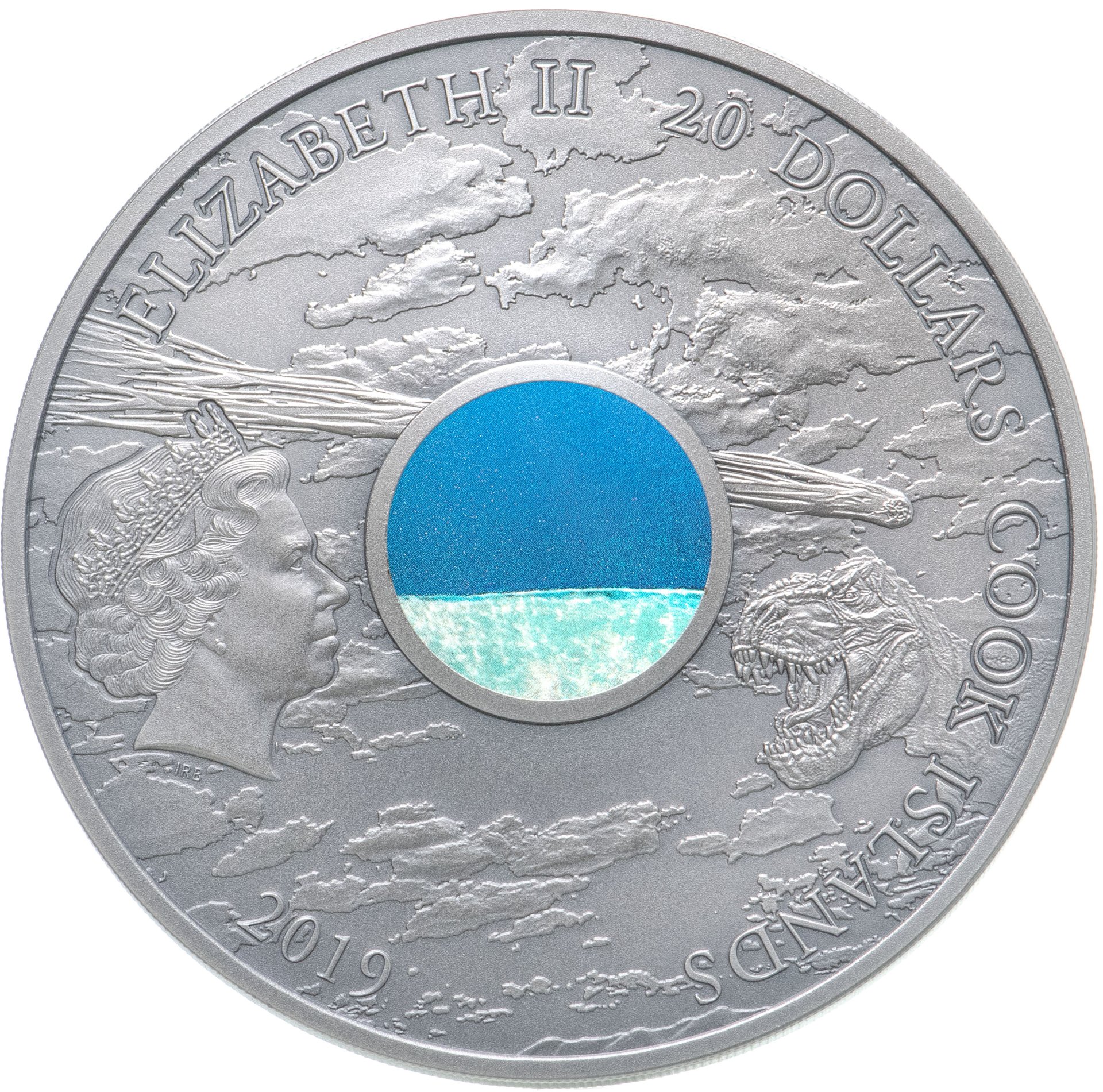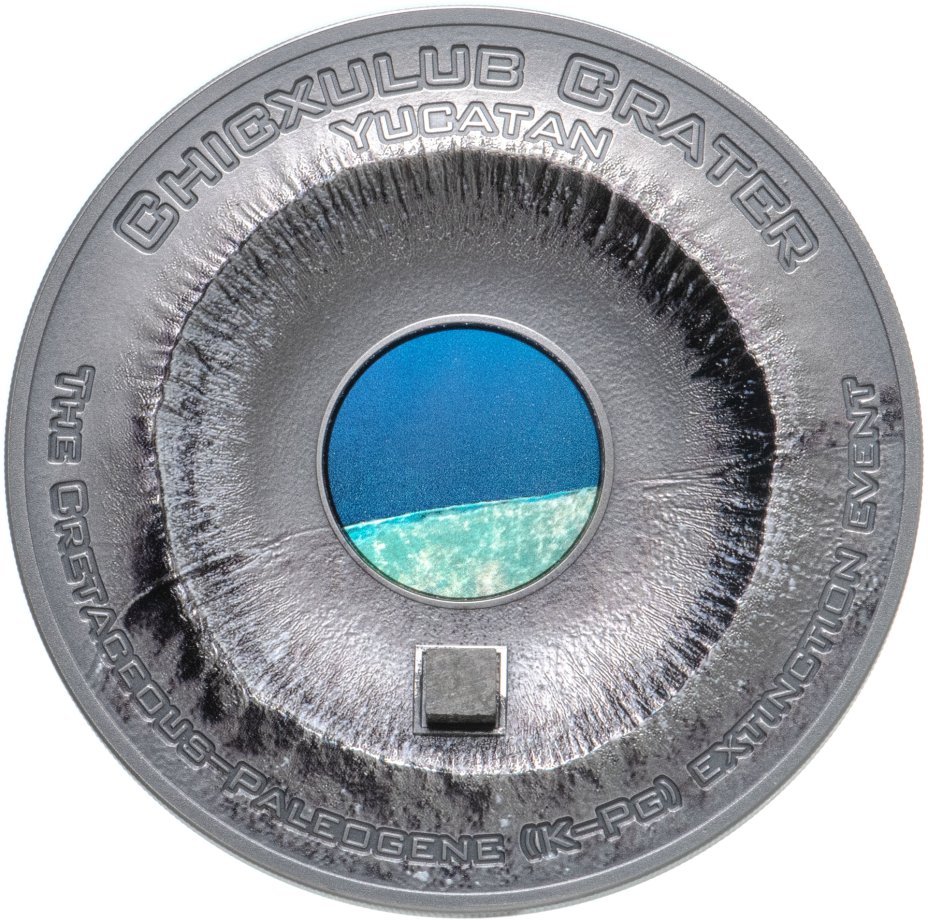 Острова Кука 20 долларов 2019 "Метеорит Чиксулуб Динозавр", в футляре с сертификатом