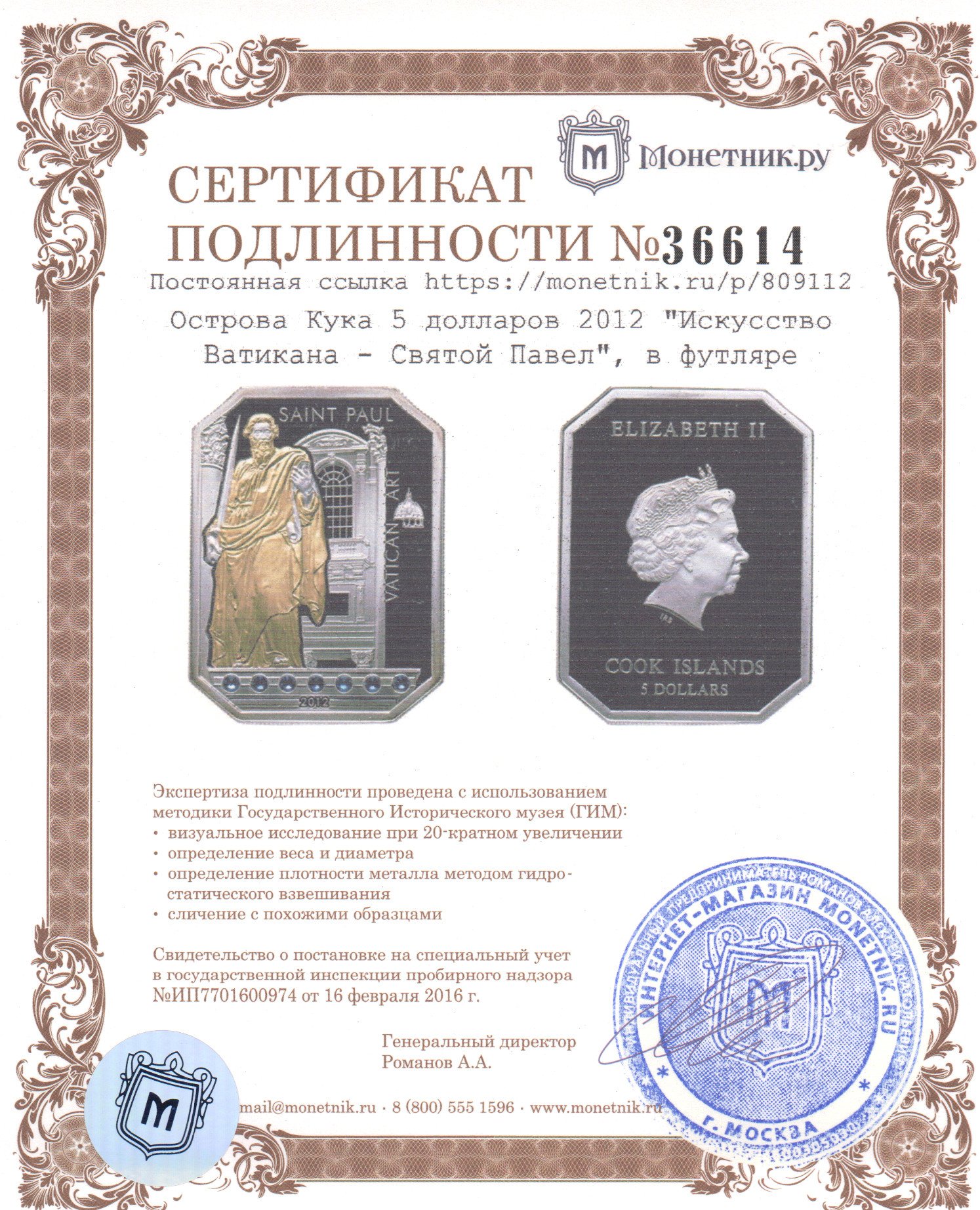 Комментарий: Прекрасный магазин. С его помощью я уже очень хорошо пополнил и оформил свою коллекцию. Конечно, буду обращаться и дальше.