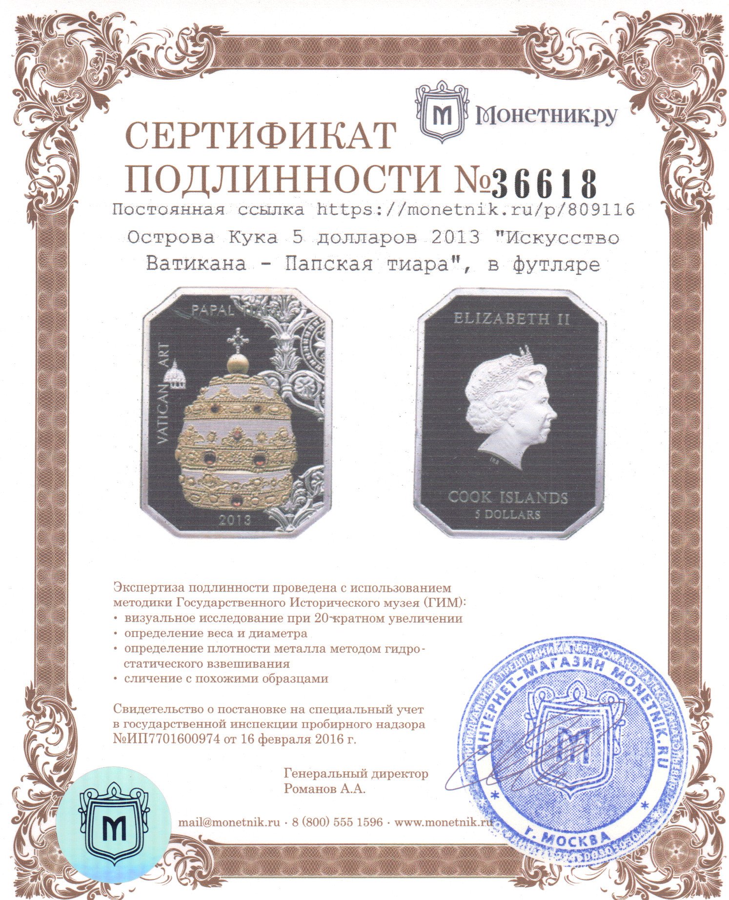 Острова Кука 5 долларов 2013 "Искусство Ватикана - Папская тиара", в футляре