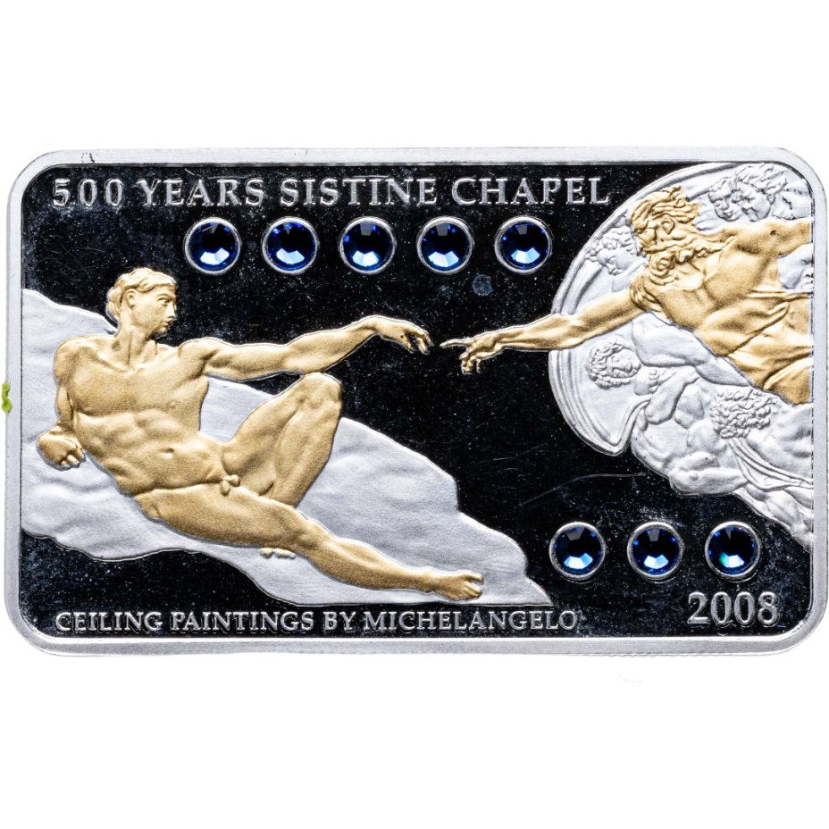 Острова Кука 5 долларов 2008 "500 лет Сикстинской капелле Сотворение Адама", в футляре