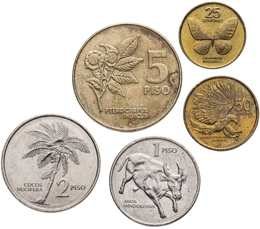 После обретения независимости официальной денежным средством в стране стало филиппинское песо (PHP) = 100 сентимо, а их производство осуществляется по указанию эмиссионного центра - Центрального банка Филиппин. В наличном обращении находятся монеты 1, 5, 10 и 25 сентимо, а также 1, 5 и 10 песо. При этом местные парламентарии уже несколько лет пытаются убрать из обращения разменные монеты сентимо, разъясняя это тем, что чеканка этих металлических денежных знаков проводится в убыток государству. И, возможно, уже скоро вся филиппинская "мелочь" станет нумизматической редкостью.