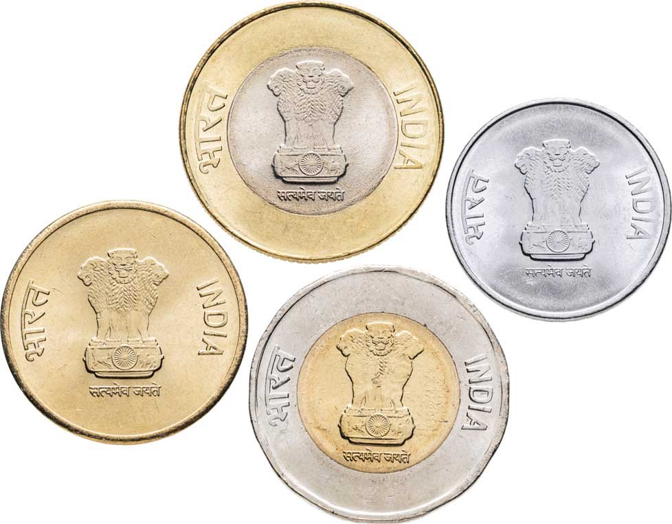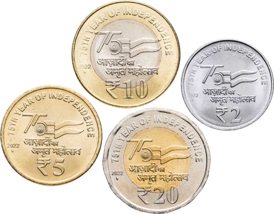 5 монет 1, 2, 5, 10, 20 рупий 2022 юбилейные «75 лет независимости»