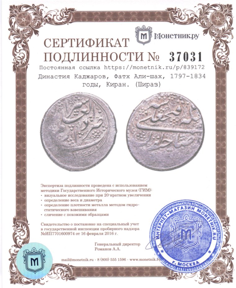 Место чеканки: Шираз.