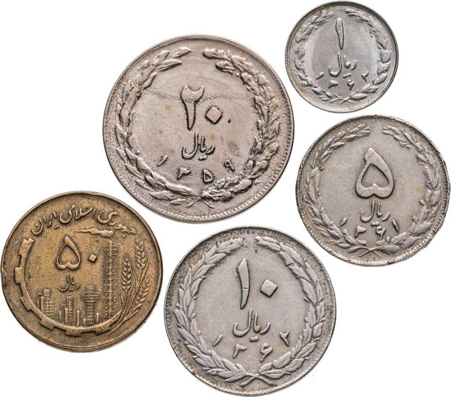 На сегодняшний день, главной денежной единицей Ирана является иранский риал. В обращении находятся монеты в 50, 100, 250, 1000, 2000 и 5000 риалов. Чеканка ведётся из: алюминиевой бронзы, медно-никелевого сплава и биметалла. Аверсы монет украшают великие архитектурные сооружения и различные цветы и растения, на реверсе расположены номинал и название страны на персидском языке.