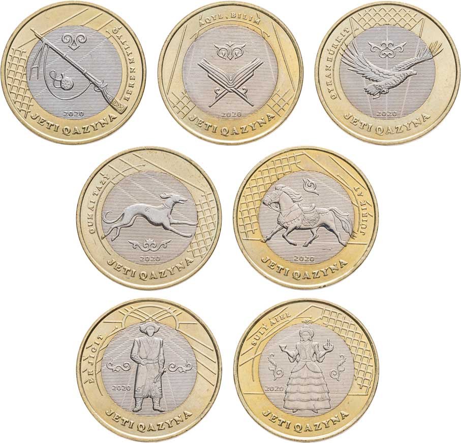 Казахстан, комплект из 7-ми монет 100 тенге 2020 года серии "Сокровища степи"