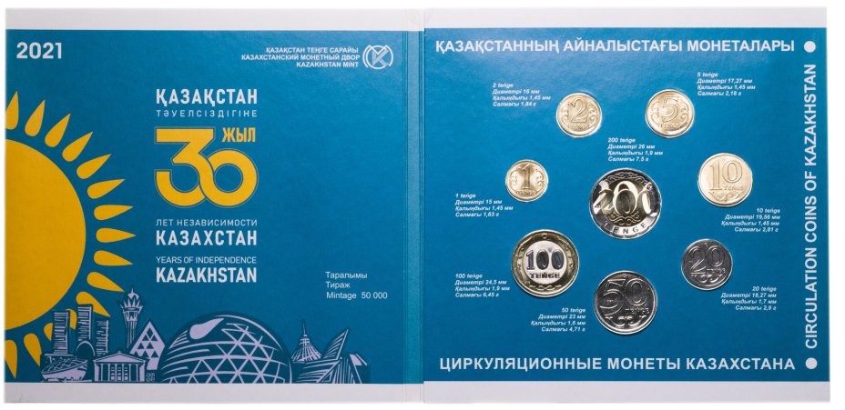 - Монеты серии «Города Казахстана» схожи параметрами с оборотной пятидесяткой, но малый тираж (50 000) сразу выводит их в разряд коллекционных.
